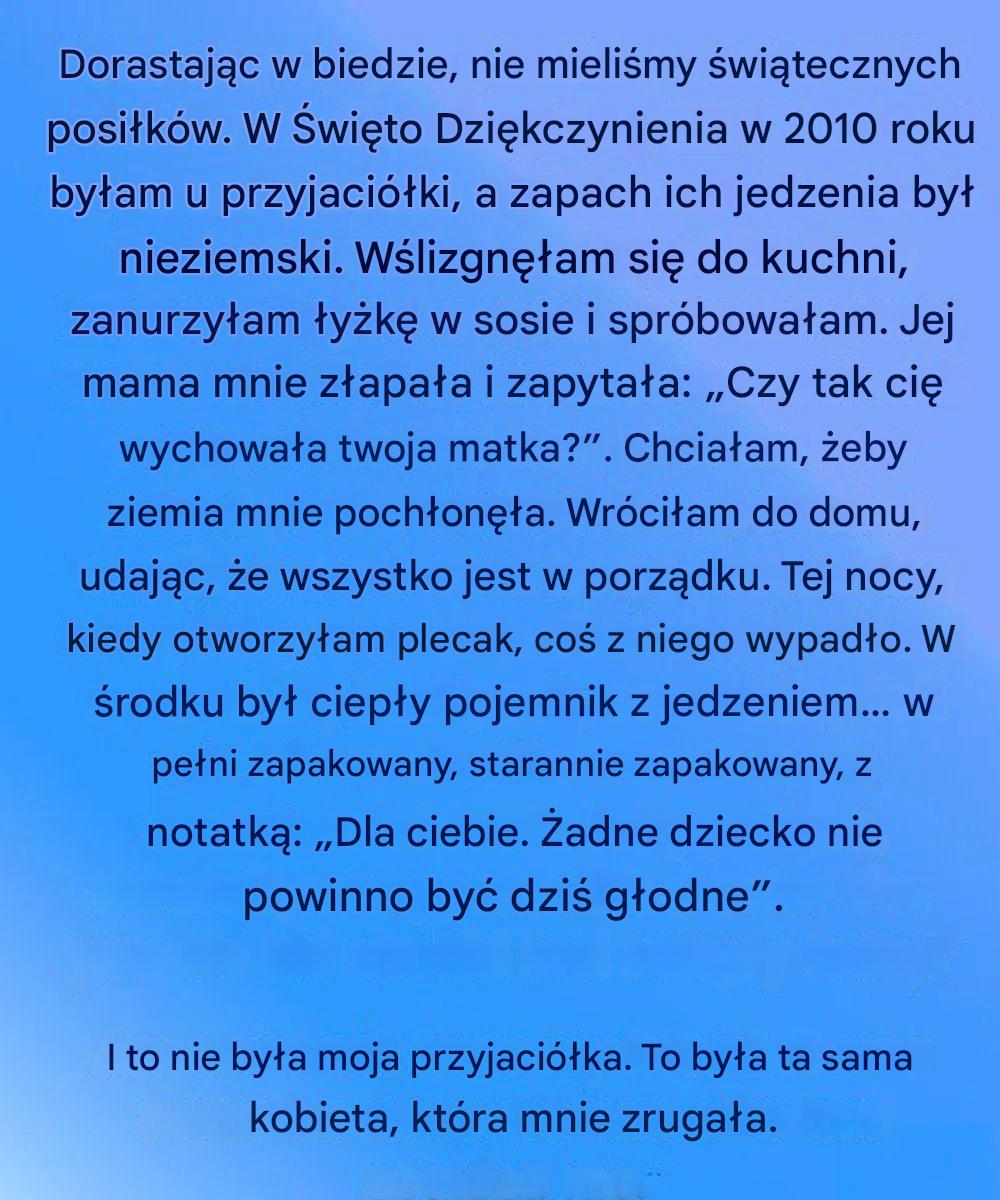 Wciąż pamiętam to Święto Dziękczynienia, jakby wydarzyło się wczoraj. Dorastając, święta nigdy nie kojarzyły się z wystawnymi stołami ani uroczystymi przyjęciami. Moja mama pracowała na niekończące się zmiany, żeby utrzymać dom, i przez większość lat Święto Dziękczynienia wydawało się zwyczajnym dniem. W 2010 roku moja przyjaciółka Layla zaprosiła mnie do siebie. Starałam się udawać obojętną, … Read more