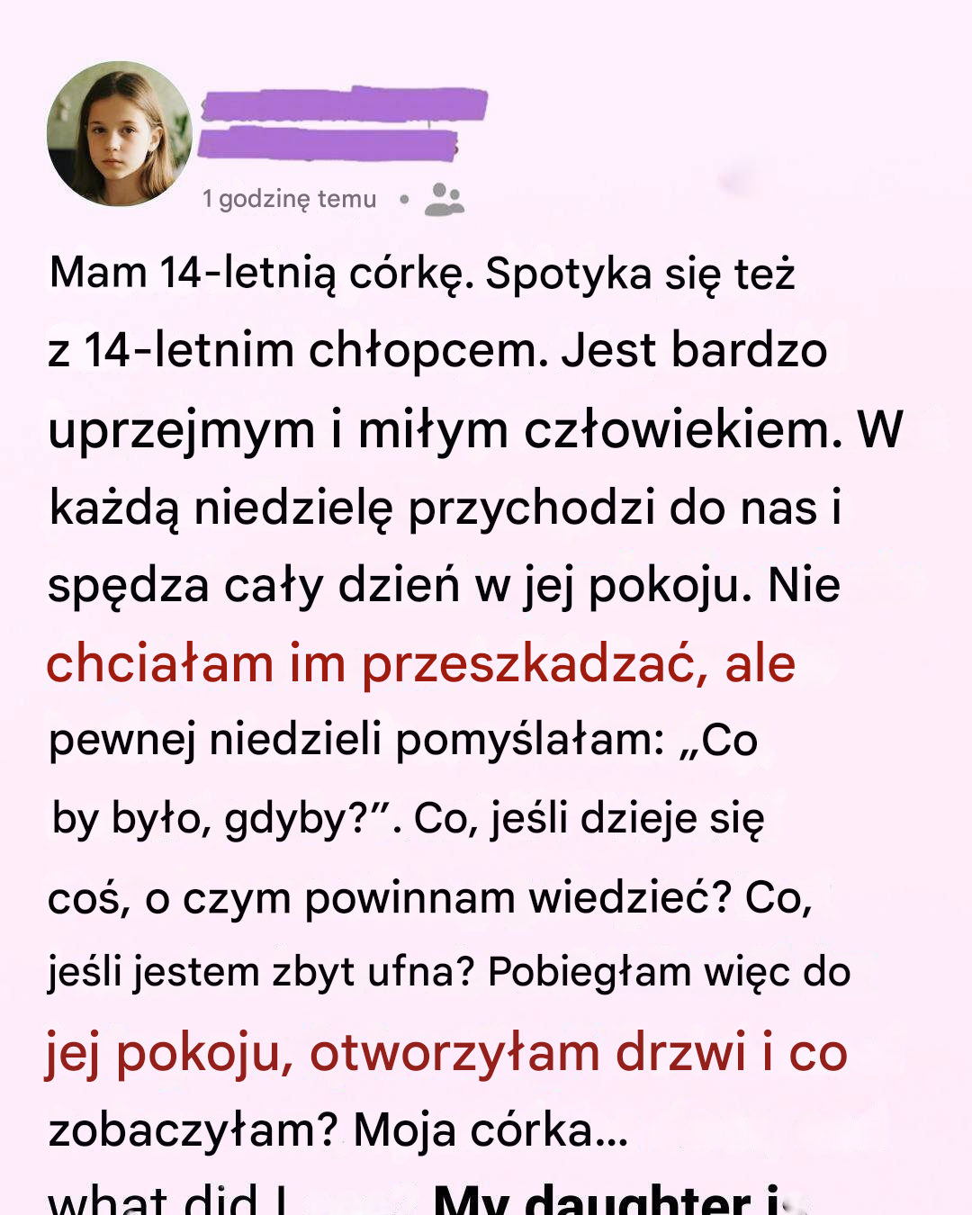 Mam czternastoletnią córkę i ostatnio żyję w wąskiej przestrzeni między zaufaniem a strachem. To moment, do którego w końcu dociera każdy rodzic – moment, w którym Twoje dziecko wkracza w świat, za którym nie możesz już w pełni podążać. Spotyka się z chłopakiem ze swojej klasy. Też czternastoletnim. Ma na imię Noah. To taki chłopak, … Read more