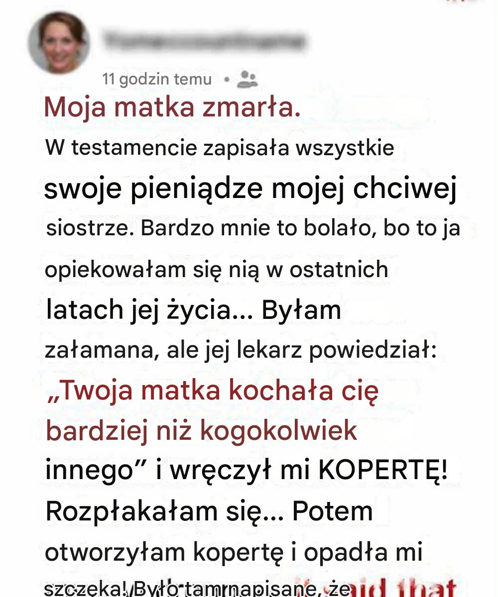 Jej słowa wciąż dźwięczały mi w głowie, gdy jechałem do niej po pracy. Coś było nie tak – mama nigdy tak do mnie nie mówiła. Kiedy dotarłem na miejsce, drzwi wejściowe były już otwarte, więc wszedłem do środka.